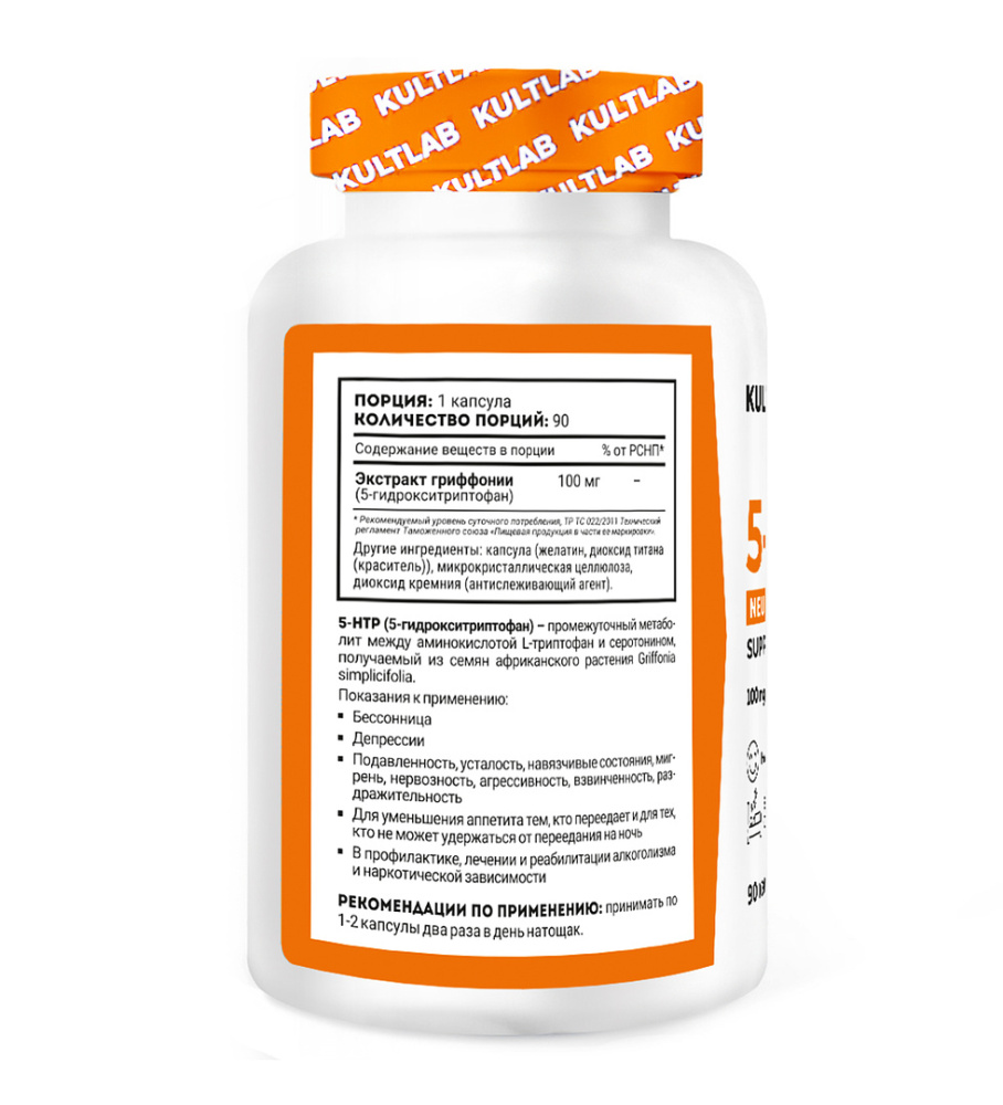 5-HTP (5-гидрокситриптофан) - промежуточный метаболит между аминокислотой L-триптофан и серотонином, получаемый из семян африканского растения Griffonia simplicifolia.
