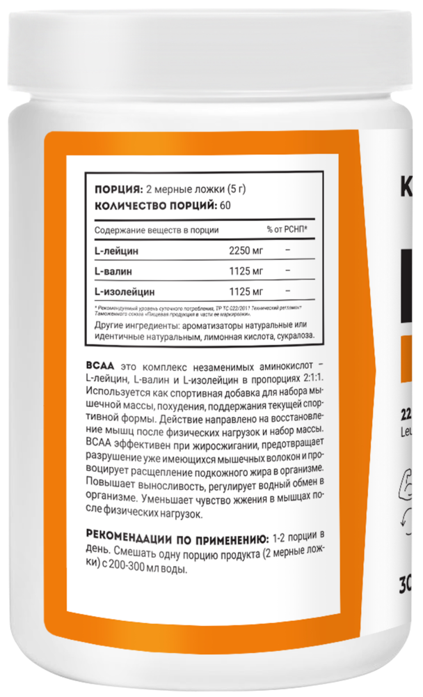 100% BCAA КУЛЬТЛАБ - это кристально чистые порошковые Л-аминоксилоты БЦАА в соотношении 2:1:1 (Л-лейцин, Л-валин, Л-изолейцин).