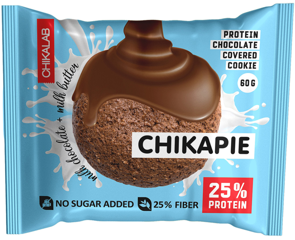 CHIKAPIE — новое протеиновое печенье, покрытое молочным шоколадом с удивительной начинкой внутри, конечно же, без сахара!