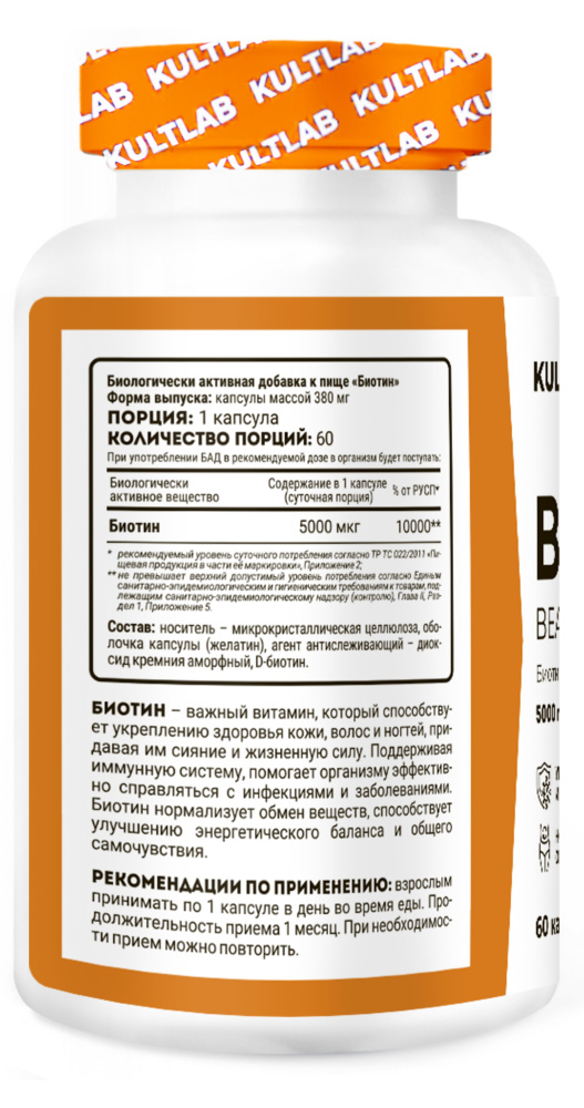 Биотин от Kultlab - это растворимый в воде витамин, необходимый для нормального роста и функционирования организма. Биотин работает как основной регулирующий элемент, участвующий в гликонеогенезе, синтезе жирных кислот и метаболизме некоторых аминокислот. Наряду с участием в выработке энергии, биотин укрепляет имунную систему и играет важную роль в поддержании здоровья кожи.