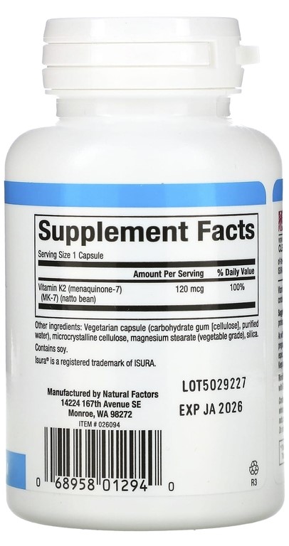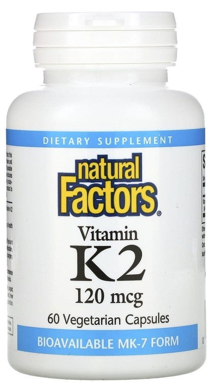 Витамин K2 поддерживает здоровье костей и сосудистой системы. Витамин K2 от Natural Factors содержит биологически активную и высокобиодоступную форму МК-7.