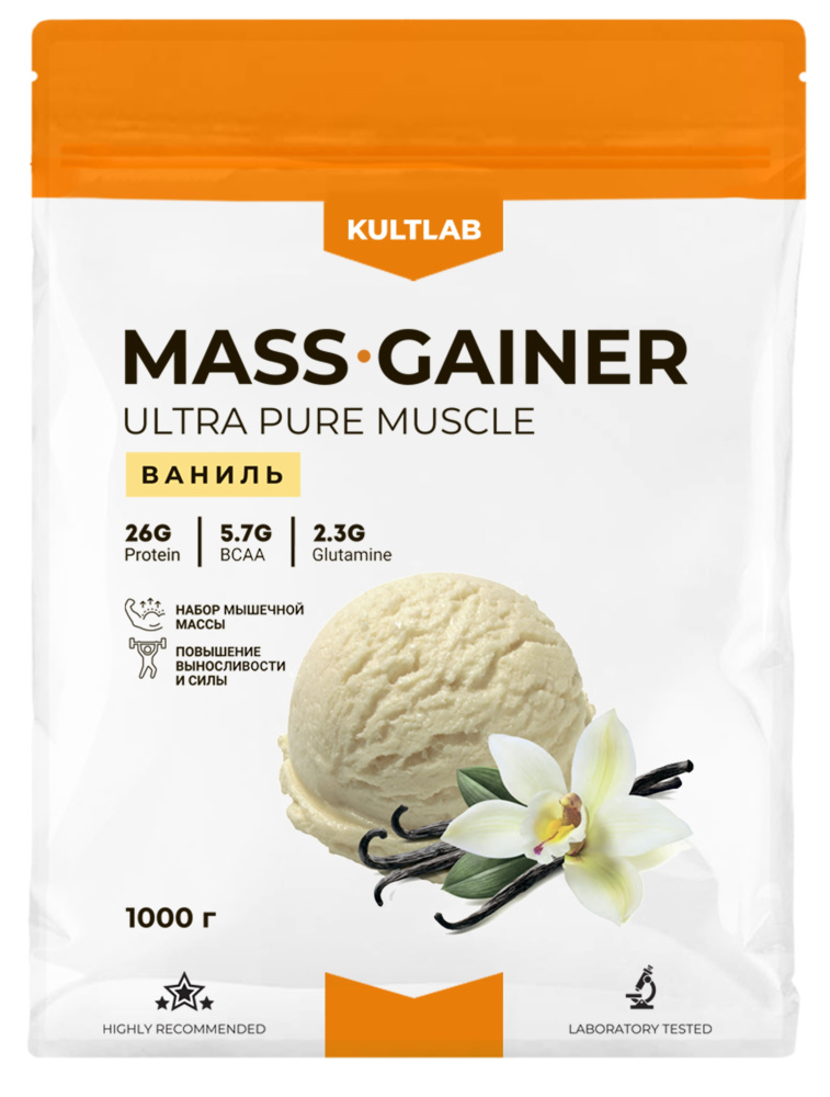 Каждая порция KultMass дополнительно обогащена креатином для улучшения выносливости и роста силовых показателей.