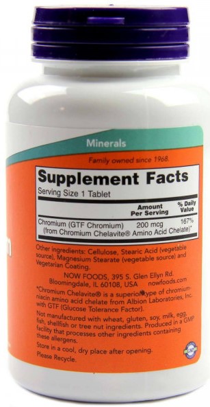 Размер одной порции : NOW GTF Chromium – Хром рекомендуется принимать в качестве биологически активной добавки к пище по 1 таблетке 1-2 раза в день во время еды.